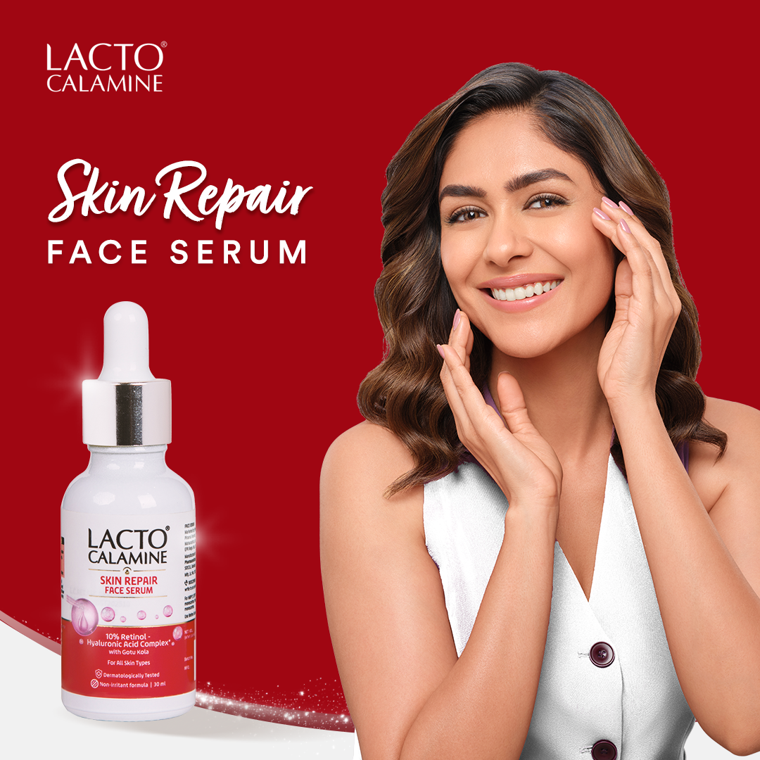 • The Lacto Calamine Skin Repair Face Serum is a blend of 10% Retinol- Hyaluronic Acid Complex that helps fight the early signs of aging and firms skin to appear youthful.