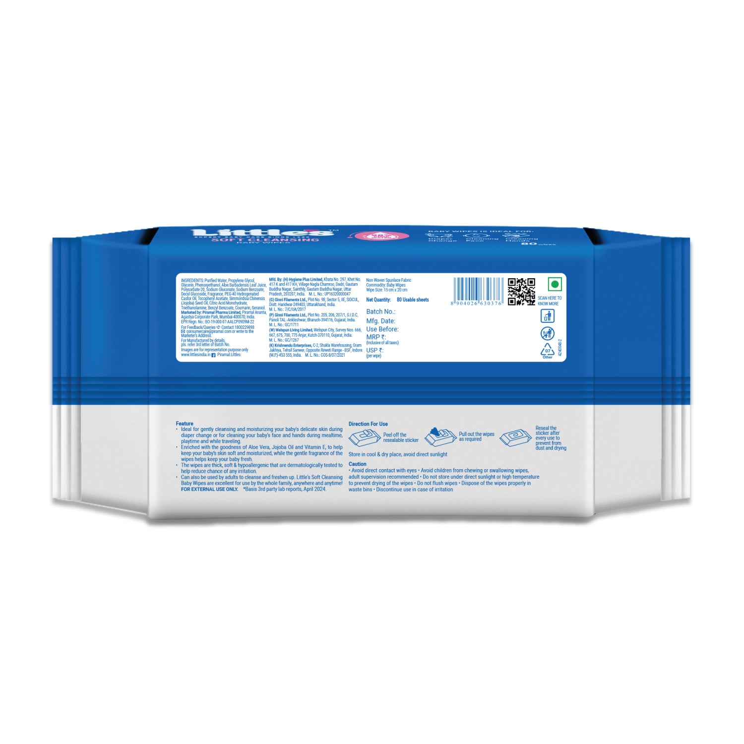 Little's Baby Wipes are extra thick and extra moist for your baby's gentle skin, enriched with the goodness of Aloe Vera, Jojoba Oil and Vitamin E, to ensure that your baby's skin remains soft and moisturized, while the gentle fragrance of the wipes keeps your baby fresh and happy all day long without causing any irritation. Little's Baby Wipes are ideal for gently cleansing and moisturizing your baby's delicate skin during diaper change or for cleaning your baby's face and hands during mealtime, playtime and while travelling.