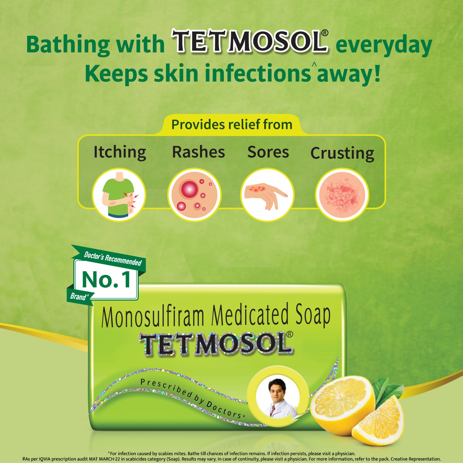 Tetmosol ® Soap is a highly recommended medicated soap that offers relief from various skin infections^. With its active ingredient, Monosulfiram, this soap provides relief from itching, sores and other skin infections^ thus promoting healthy skin.
